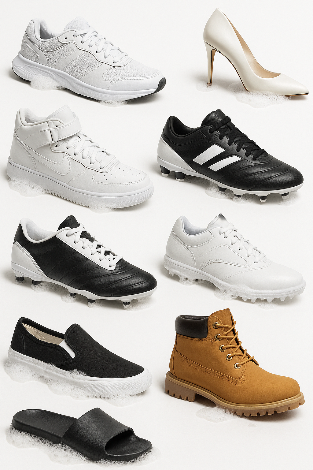 Whether it’s sports trainers, running shoes, gym sneakers, football boots, kids’ school shoes or your favourite everyday footwear — this kit makes cleaning quick, simple and satisfying.